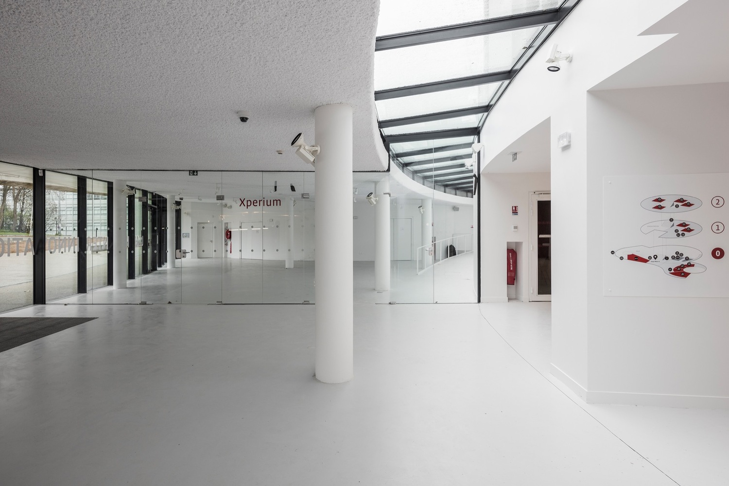 event area, a cafeteria and an experimentarium. A landscaped plateau encloses